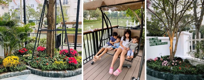 Góc sân trước nơi các con cô rất thích tụ tập.